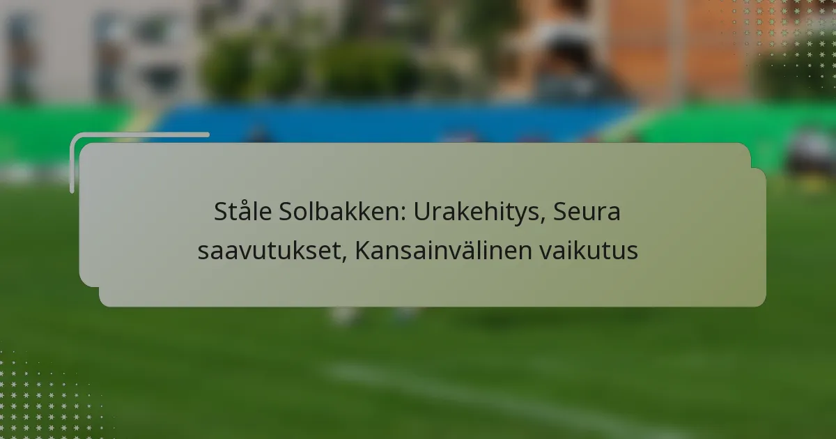 Ståle Solbakkenilla on ollut merkittävä ura sekä pelaajana että valmentajana, johon liittyy merkittäviä saavutuksia seurajalkapallossa ja kansainvälisissä kilpailuissa. Hänen matkansa sisältää varhaisia ammattilaisdebyyttejä, huomattavia pelikohtia ja onnistuneen siirtymisen valmennukseen, jossa hän on saanut tunnustusta taktisen älykkyytensä ja johtajuutensa ansiosta.
