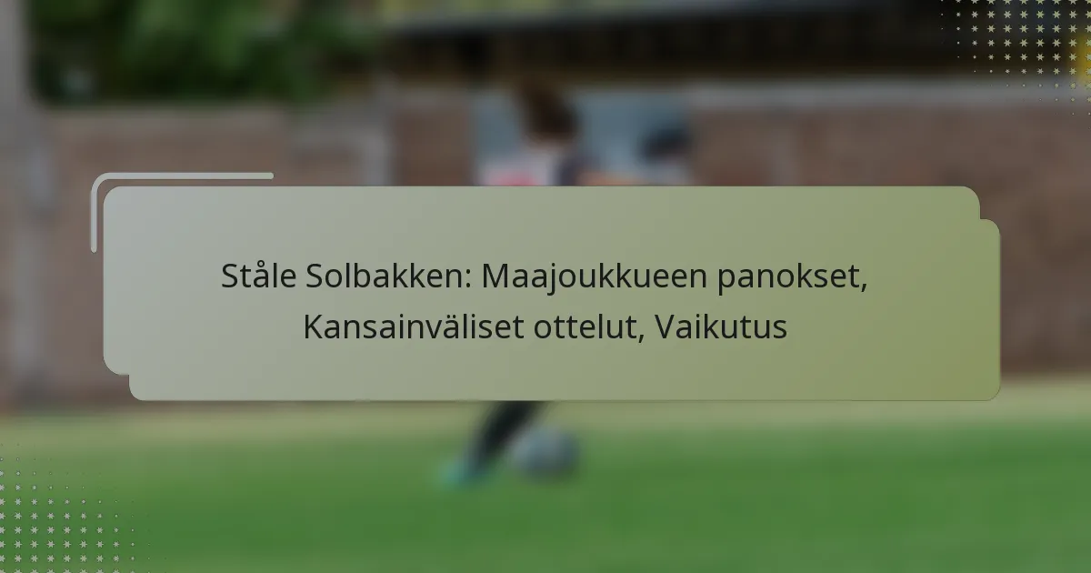 Mitkä ovat Ståle Solbakkenin keskeiset panokset maajoukkueelle?